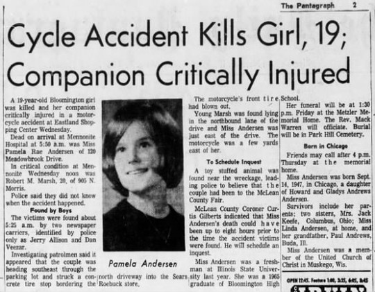 Pam Andersen was a tiny little sprite with a huge personality. She died WAY too soon...in a motorcycle accident in our senior year - 1965.